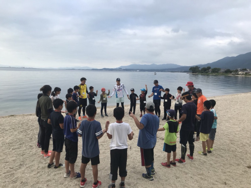 この地域の子どもたちにこの地域を好きになって欲しい!琵琶湖の豊かなフィールドで楽しんで欲しい!という気持ちからびわこ成蹊スポーツ大学の先生、学生さんにお世話になり、実施できています。