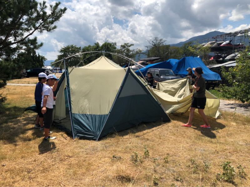 自分たちの寝床のテントを張り、琵琶湖で泳ぐこともできました![]()