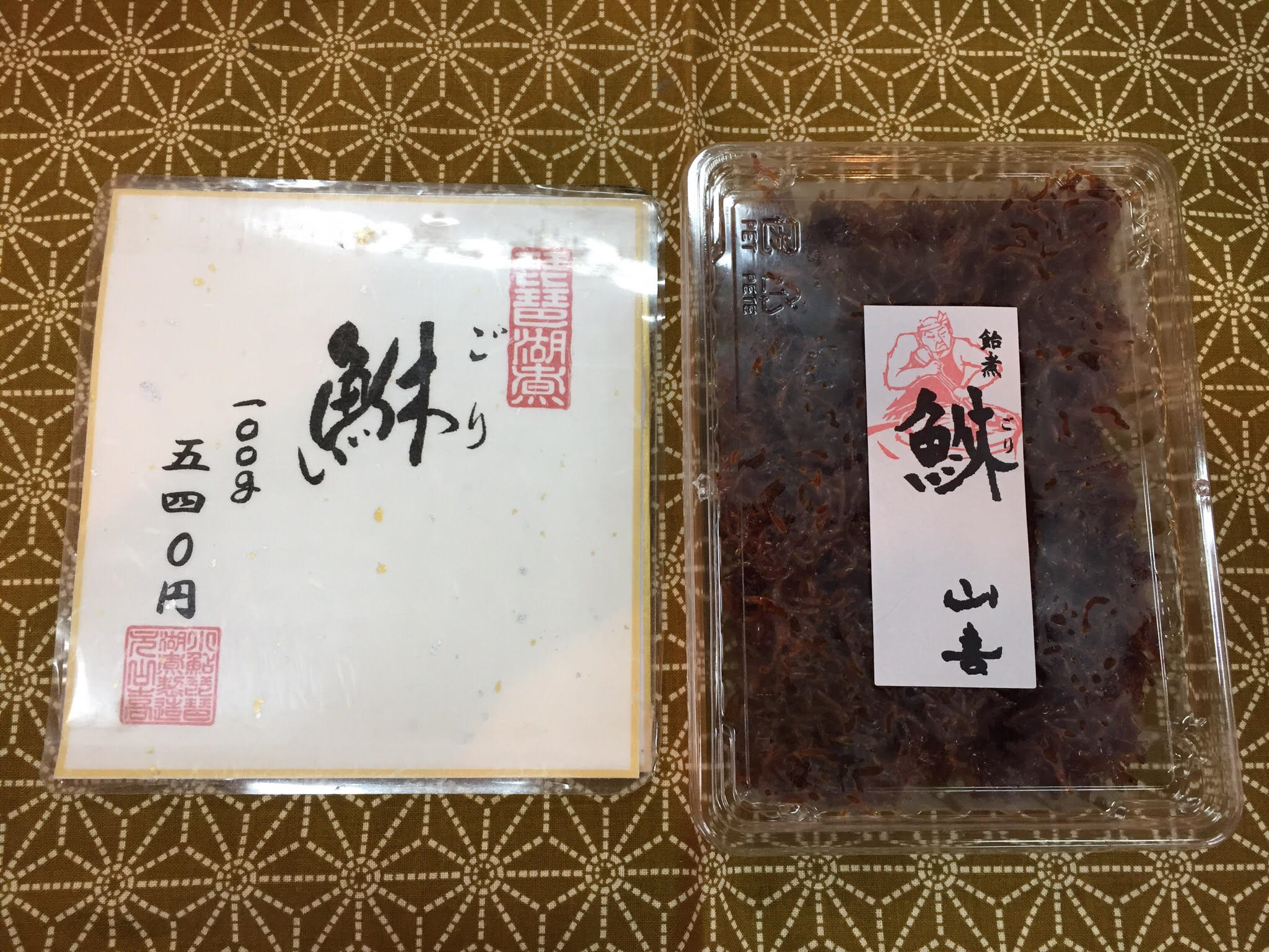 ・売れ筋商品(えび豆、小鮎佃煮、ごり佃煮 など、琵琶湖ならではの商品)
