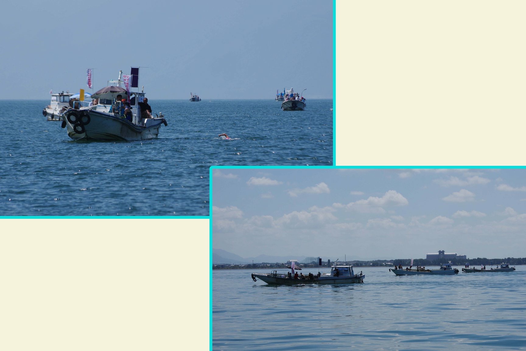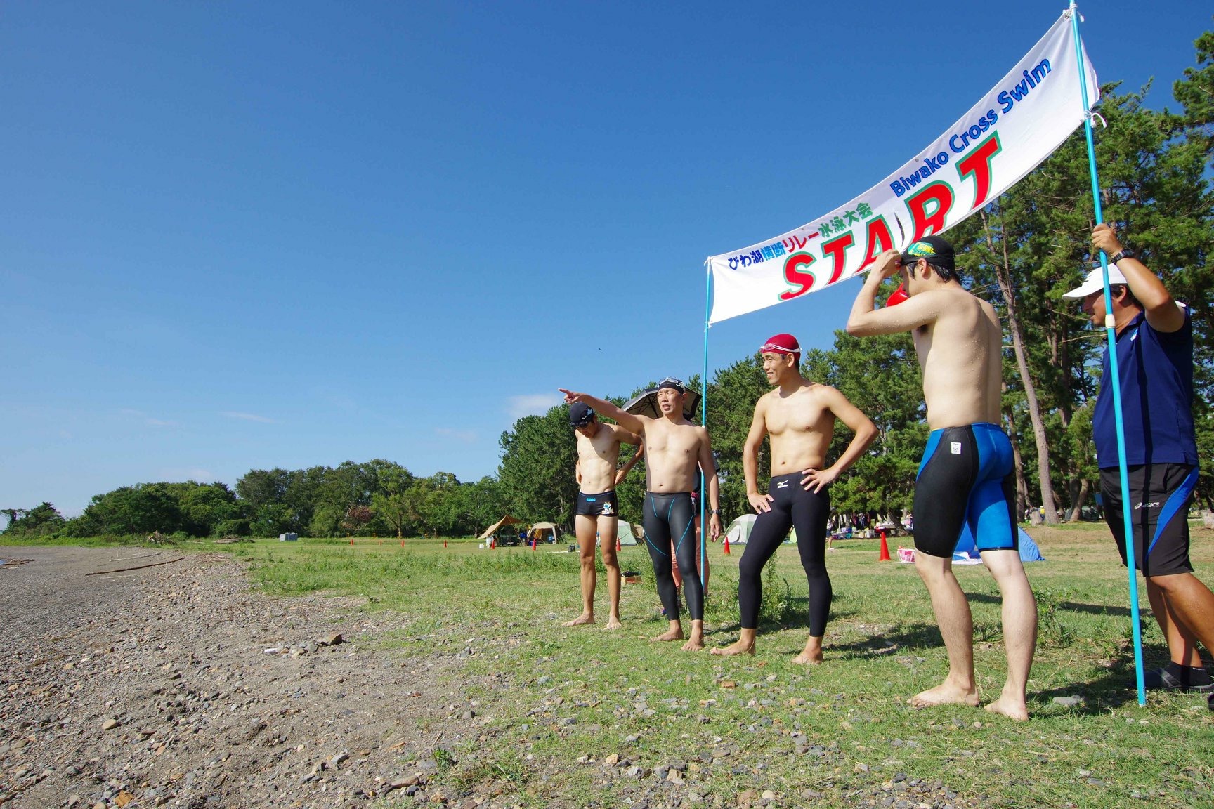 このクロススイムは、滋賀県高島郡安曇川町琵琶湖岸から同県彦根市の琵琶湖湖上及び彦根市松原水泳場までを6人でリレーして横断する競技です。