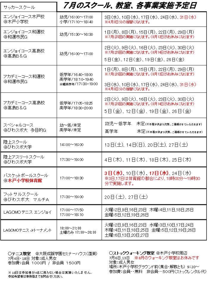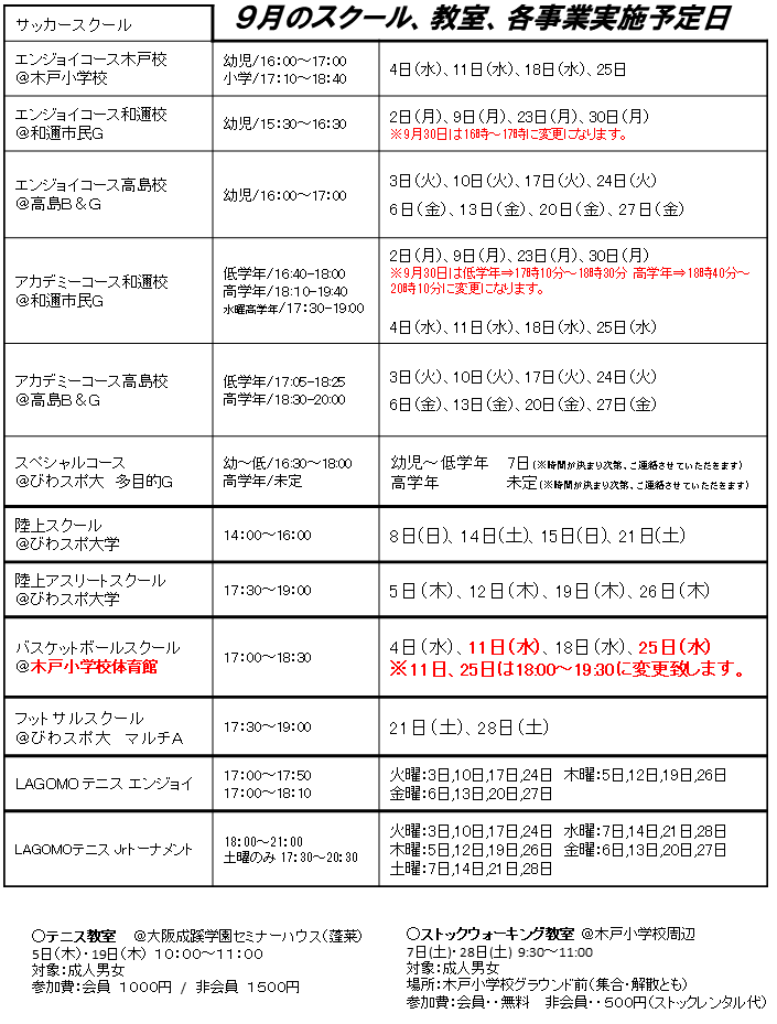 【スケジュール】9月の日程を更新しました