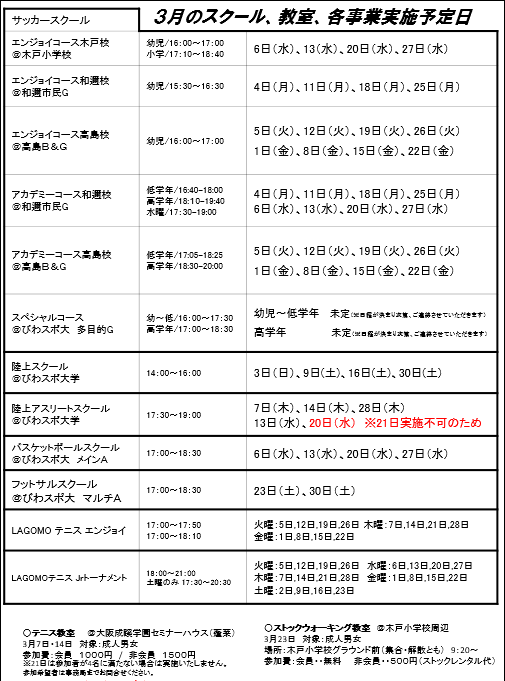 【スケジュール】3月の予定を更新しました