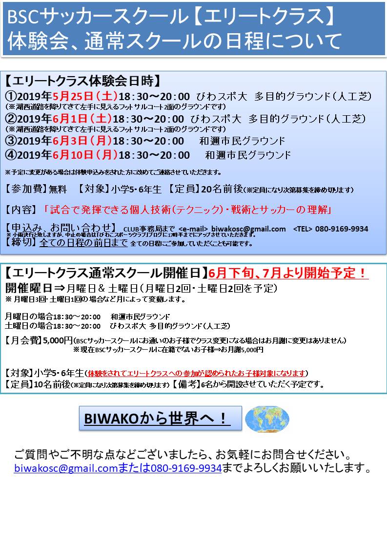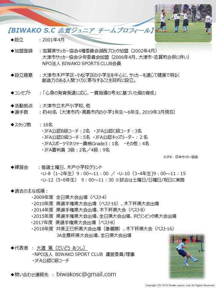 【募集】BIWAKO S.C 志賀ジュニア 新入会員募集のお知らせ
