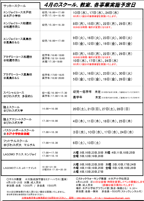 【スケジュール】4月の予定を更新しました