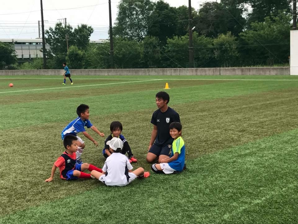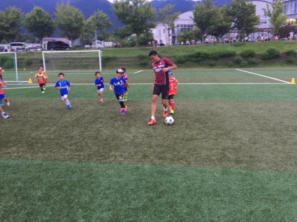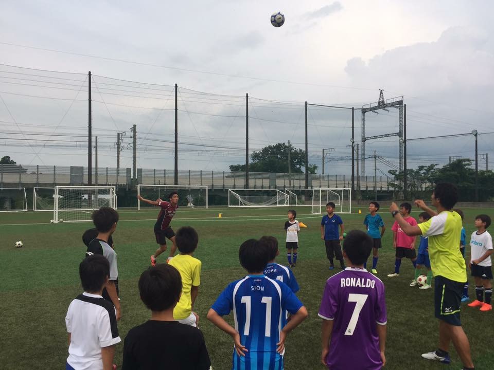 高学年クラスは宮選手からロングキックとヘディングのポイントを実際にプレーを魅せてもらいながら