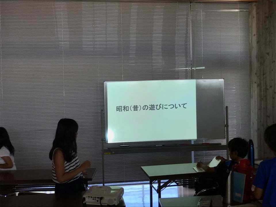 午前中は昭和の遊びについてpower pointを使いながら事前学習を行い、午後からの教室に備えました!