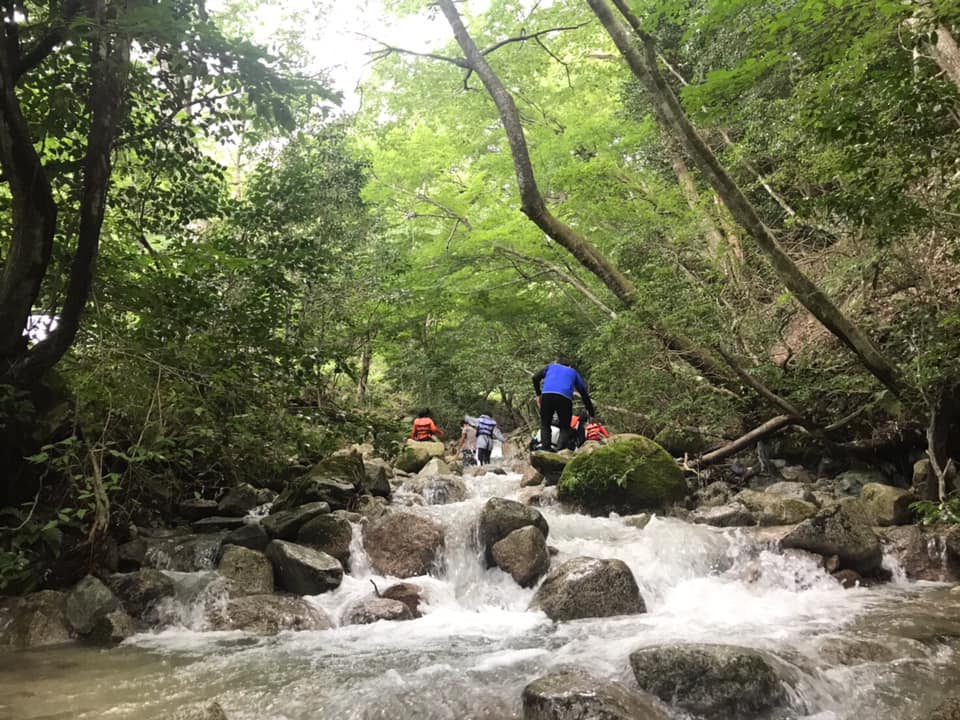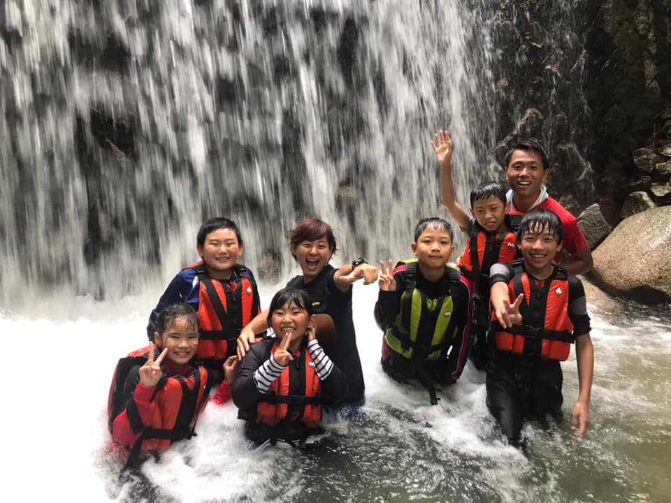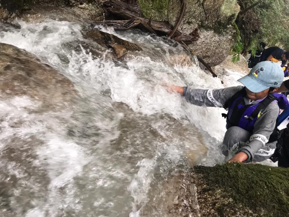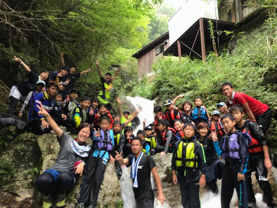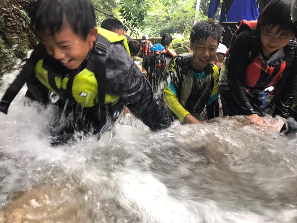 メインプログラムの沢登りでは台風の影響もあり水の量が多く、流れが速かったですが、自分で自分の安全を確保しながら、子どもたちはカラダ全体を使って、周りの仲間に支えてもらいながら一生懸命にそして楽しく登ることができました。