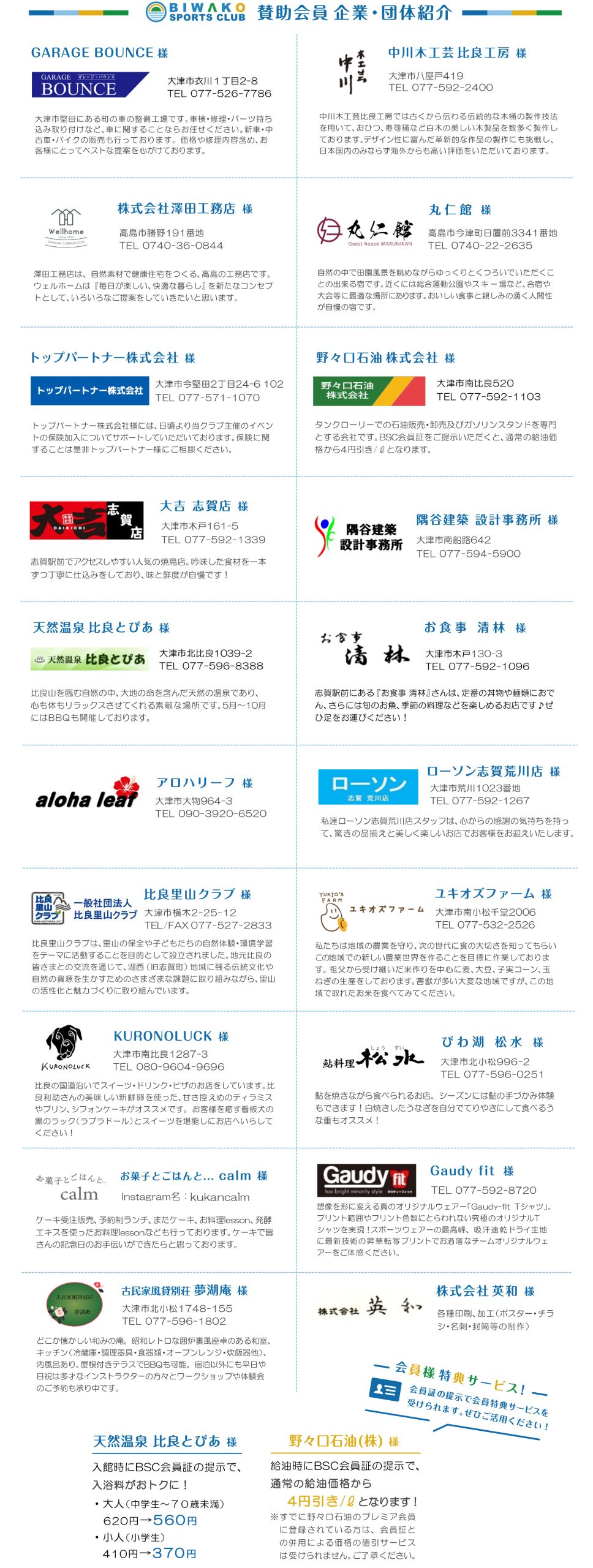BSCの活動理念に賛同し、地域貢献をいただいている企業様及び団体様を記載いたします。BSCでは、スポーツ活動を通じて地域社会の発展を目指しています。スポンサー様と一緒に、元気で豊かな地域づくりに貢献できるように努めていきます!